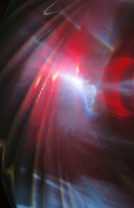 The Northern Lights came to mind when I glanced up at the reflections on the ceiling, and I later darkened the gray look of the dimly lit white ceiling to accentuate the effect.